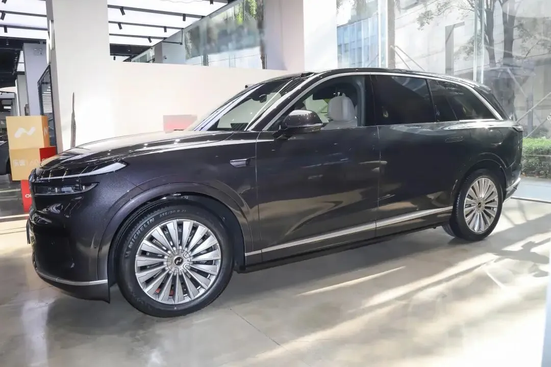从侧面看,车身线条比较简洁流畅。采用了无框车门和隐藏式门把手的设计,车窗比较窄,配合钛金柔光饰条,视觉效果比较协调。隐藏式的B柱和C柱设计让车窗看起来更修长。轮毂尺寸有21英寸可选,样式也有几种选择。