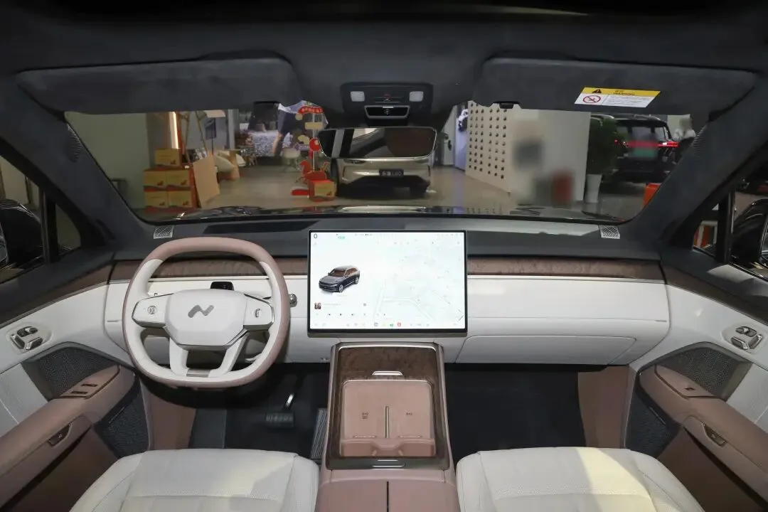 拉开车门,内饰给人的感觉是简洁。中控台中央是一块17.2英寸的屏幕,分辨率是3K。车机用的芯片是高通骁龙8295,操作起来的流畅度是不错的。这套叫“Coconut椰子”的系统,功能比较全,像卫星导航、在线娱乐、OTA升级这些都有。手机互联支持原厂映射,用起来直接。方向盘是真皮材质,能电动调节,也带加热和记忆功能。换挡是怀挡设计,用习惯了会感觉比较顺手,也给中控台省出了一些空间。音响有23个扬声器,支持杜比全景声,布局是7.1.4声道,功放最大功率2048瓦。实际听感,声音的环绕效果比较明显,在车里看个电影,氛围感是有的。