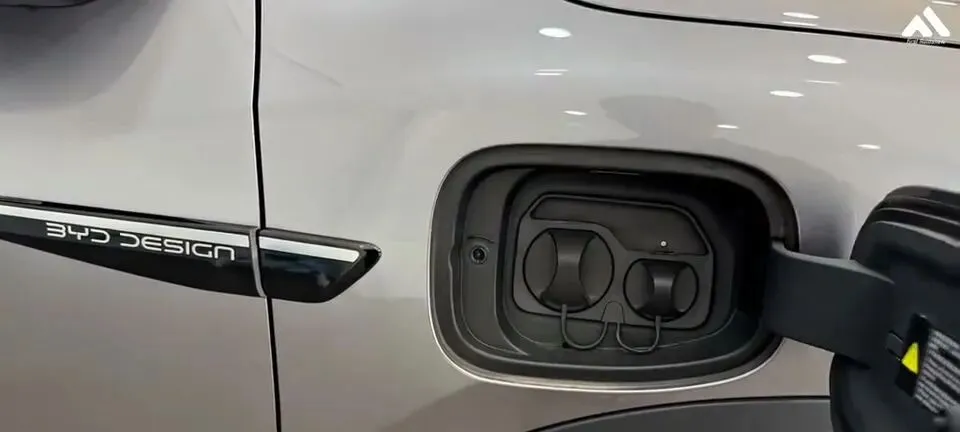 “展示比亚迪元UP的汽车侧面充电口。”