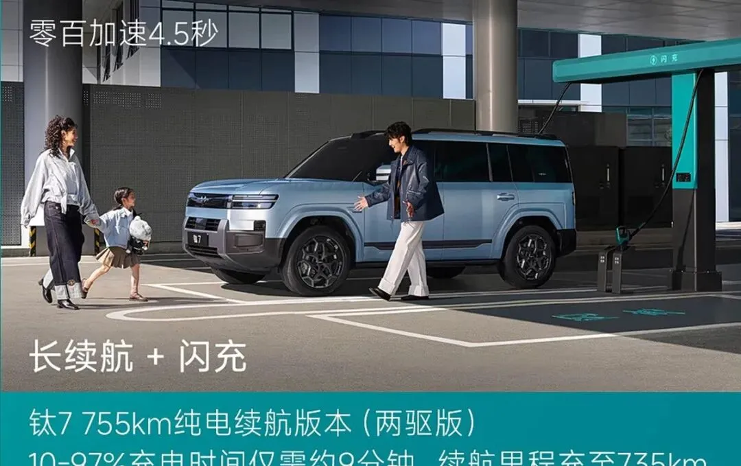 钛7 EV,就是一辆能跑长途、能装东西、充电比你泡面还快的纯电SUV。
