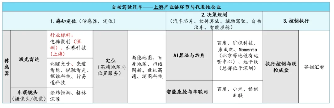 表1:自动驾驶汽车产业链——上游企业(示例:北京地区)