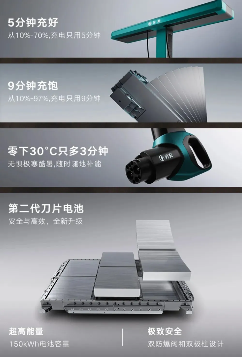 - 5分钟充至70%、9分钟充满,补能速度堪比加油;