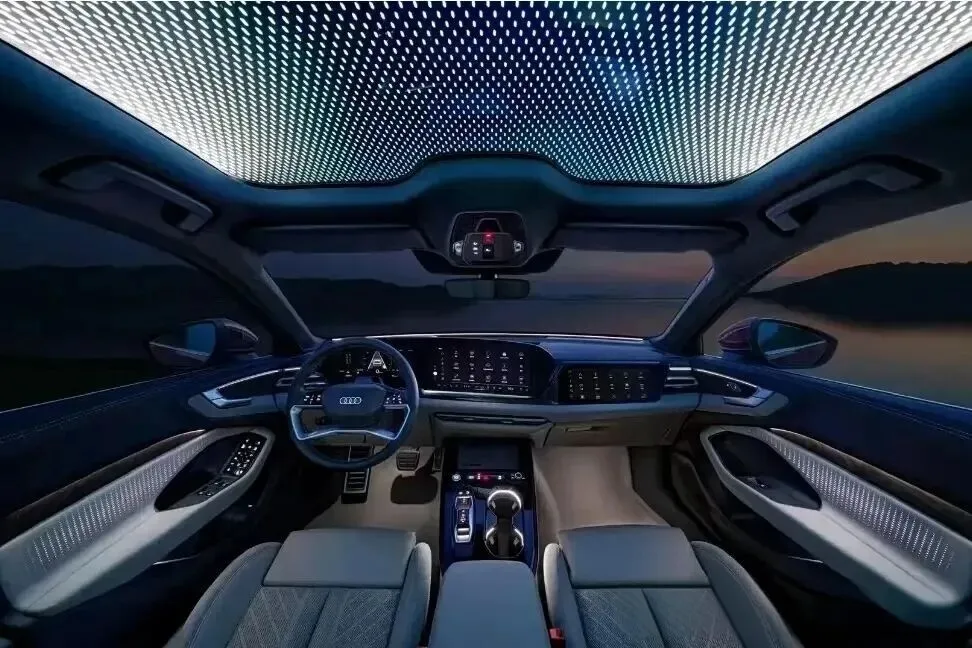 内饰方面,打开车门之后,你会发现这台全域智混版奥迪 A5L 整整配备了 3 块科技感爆棚的大屏,包括 11.9 英寸全液晶仪表、向主驾倾斜 6 度左右的 14.5 英寸中控屏、以及 10.9 英寸副驾娱乐屏;配合可以挑选 Bang 或者 Olufsen 的 16 扬声器,完全可以将它变成你的另一个私人音乐厅。