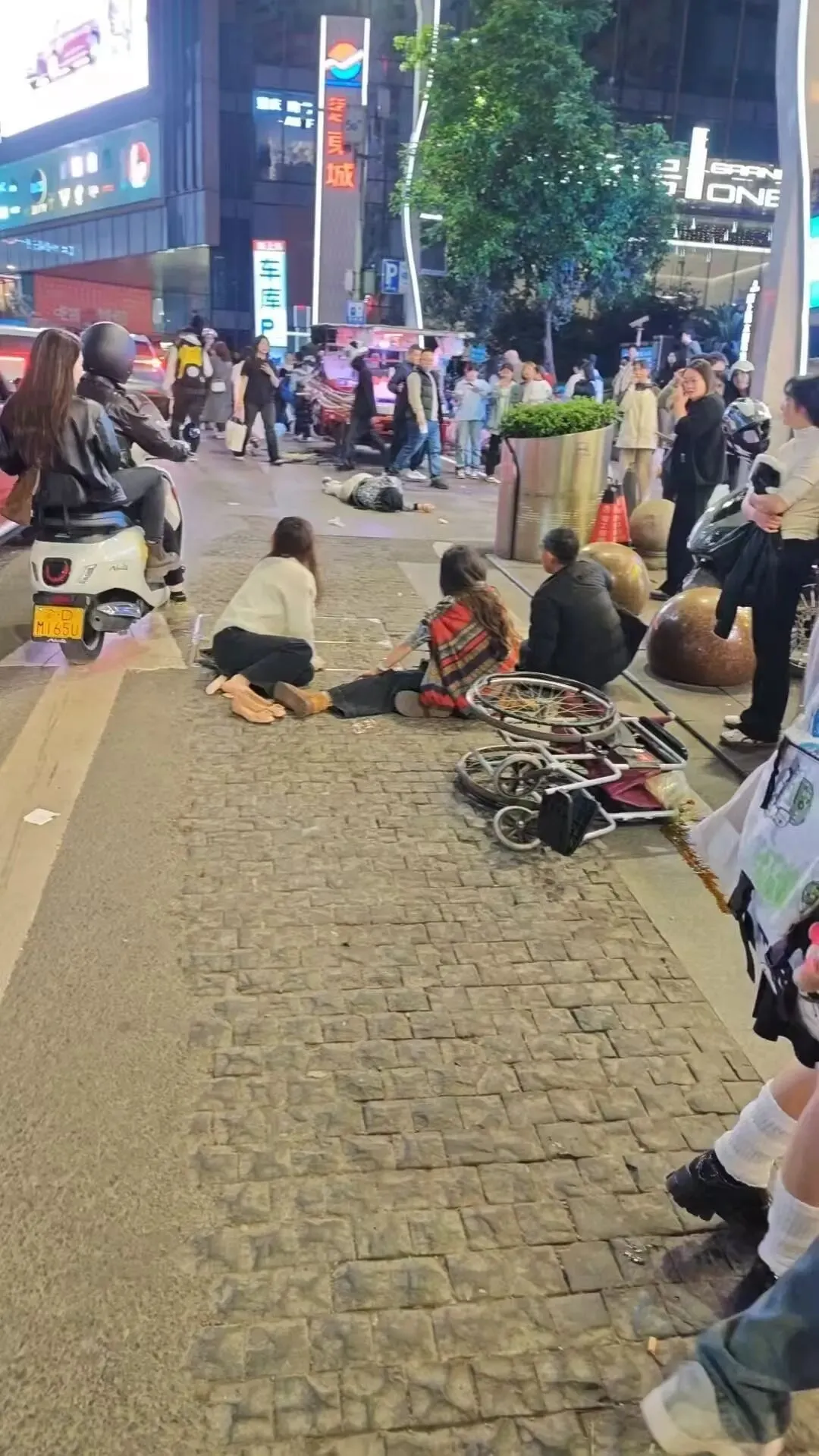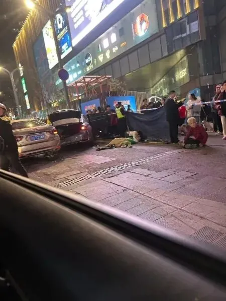 网上流传的视频显示,肇事轿车撞倒一片人。一个女生一直趴在男伴的身上哭泣。那个男的左腿基本废了,大腿肉全掉了。