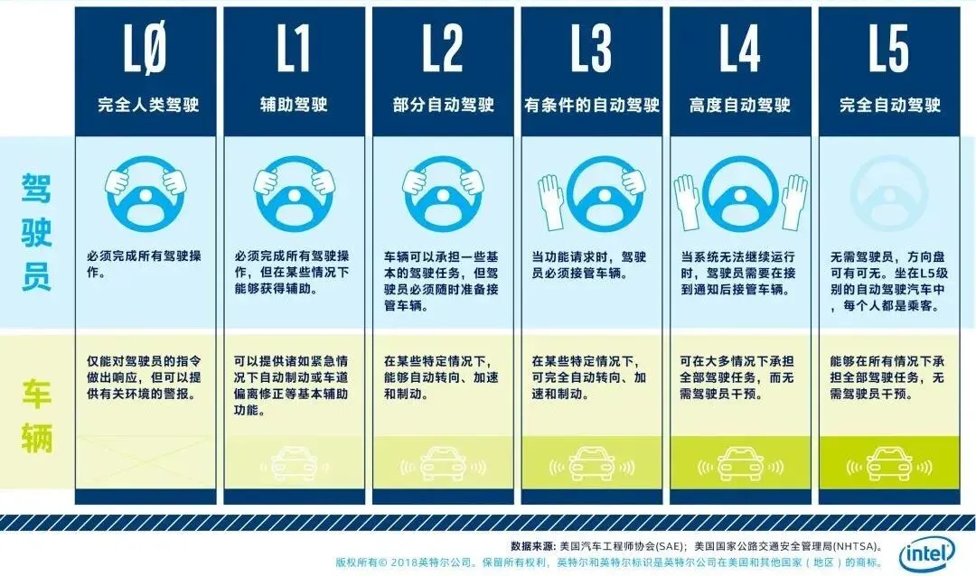 L0:无自动化。车辆完全处于驾驶员的掌控之下,车辆完全不具备自动化驾驶功能,驾驶员全权负责所有驾驶操作。车辆仅能提供基础的安全预警,如碰撞提示、胎压异常提醒等,但不会主动干预驾驶行为。