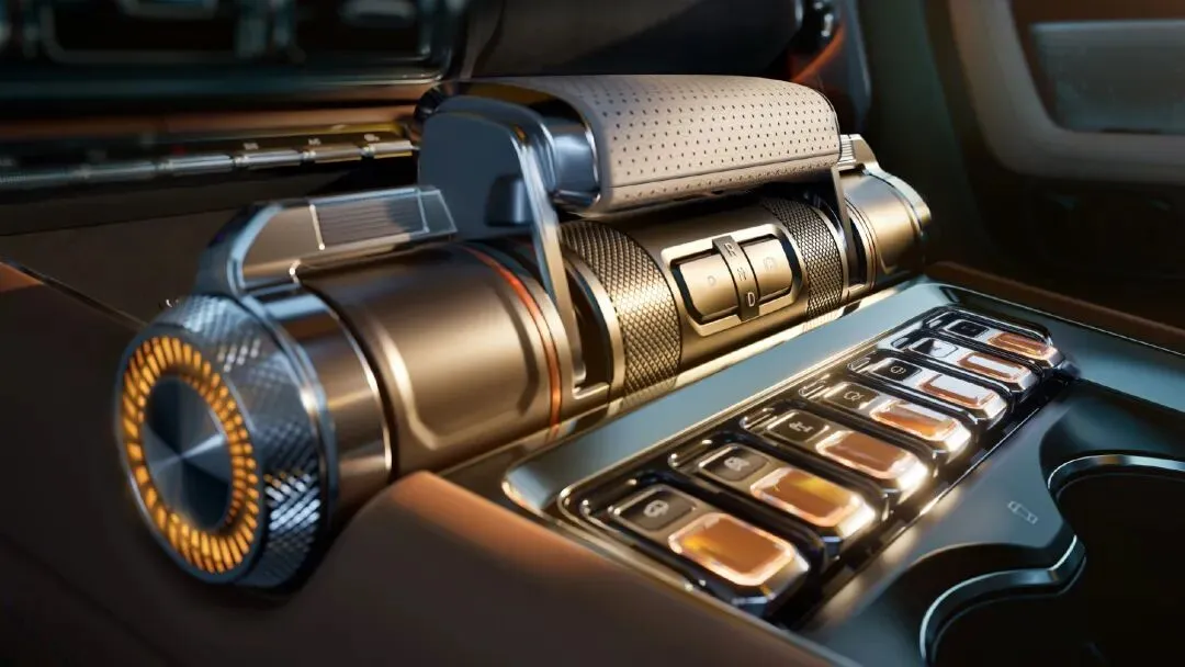日前,吉利银河品牌官方宣布,旗下的首款硬派SUV命名为吉利银河战舰700,新车是2025年上海车展银河战舰概念车的量产版本,量产版实车有望于2026北京车展首发亮相,并于今年内上市。从官图来看,新车的前脸采用的是比较硬朗的设计语言,保留了传统的矩形进气格栅,内部使用了网格状结构进行装饰,有着一定的层次感。格栅内部还集成有贯穿式日行灯,银河车标也能发光。两侧大灯组采用了熏黑的半圆形设计,内部集成有透镜,风格比较粗犷。下包围部分配备有粗壮的黑色保险杠,有着比较强的立体感,保留了矩形进气口,内部同样使用了网格状结构进行装饰,进一步增强了力量感表现,整个车头属于非常魁梧的类型。侧面造型方面,车顶线条比较平直,而且配备有粗壮的行李架,双色车身营造出了悬浮式车顶,在硬派风格SUV种也算是一股清流了。腰线采用了贯穿式设计,让车身显得修长大气,轮眉和侧裙部分设计有粗壮的黑色饰板,进一步增强了力量感;轮毂采用了五幅式造型,风格足够大气。尾部造型方面,此前公布的伪装车谍照显示车顶配备有小巧的高位刹车灯,外挂式的全尺寸备胎罩也没有缺席,尾灯组采用了垂直布局,尾门也是侧开设计;下包围部分配备有立体感十足的保险杠,两侧还有类似双边共两出排气口的装饰。内饰方面,官方只是公布了操作台的细节,配备有类似飞机操控杆的电子档把,而且大面积保留了实体按键,同时还加入了镀铬饰板进行装饰。凸显了硬派气息,手机无线充电面也没有缺席。动力方面同样没有明确的消息,官方称新车将会搭载自研的GVMC动态控制系统,可以通过80km/h的麋鹿测试。同时还配备有AI智能四驱,可自动切换前驱、后驱和四驱模式,支持蟹行模式,原地掉头、爆胎行驶、障碍物连续自动避让技术等技术,涉水深度可达800mm。