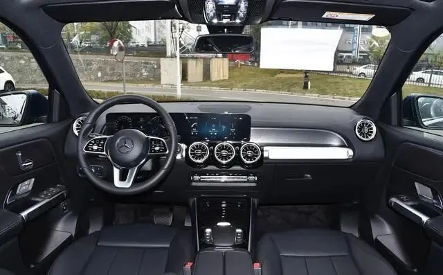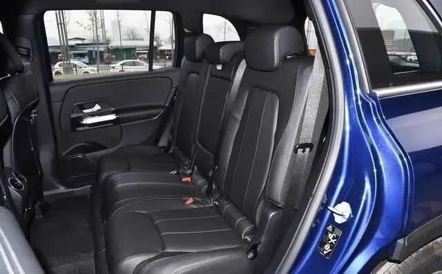 最后是奔驰GLB。这台车最神奇的地方在于——它用A级车的底子,做出了GLE的气场。方正的轮廓、高腰线、大轮毂,停在小区里,邻居常误以为你换了中大型SUV。2829mm的轴距更是同级罕见,五座状态下后排堪称“小客厅”,翘个二郎腿毫无压力(七座版就算了,第三排纯属应急)。内饰虽然大量硬塑料,但双联屏+涡扇出风口的设计依然营造出强烈的奔驰味儿,氛围感拉满。可惜,那台190马力的2.0T配8速双离合,加速肉、换挡偶有迟疑,隔音也一般,胎噪风噪一上来,豪华感就打了折扣。但话说回来,花25万买到一台挂着三叉星、轴距近2.83米的SUV,还要啥自行车?