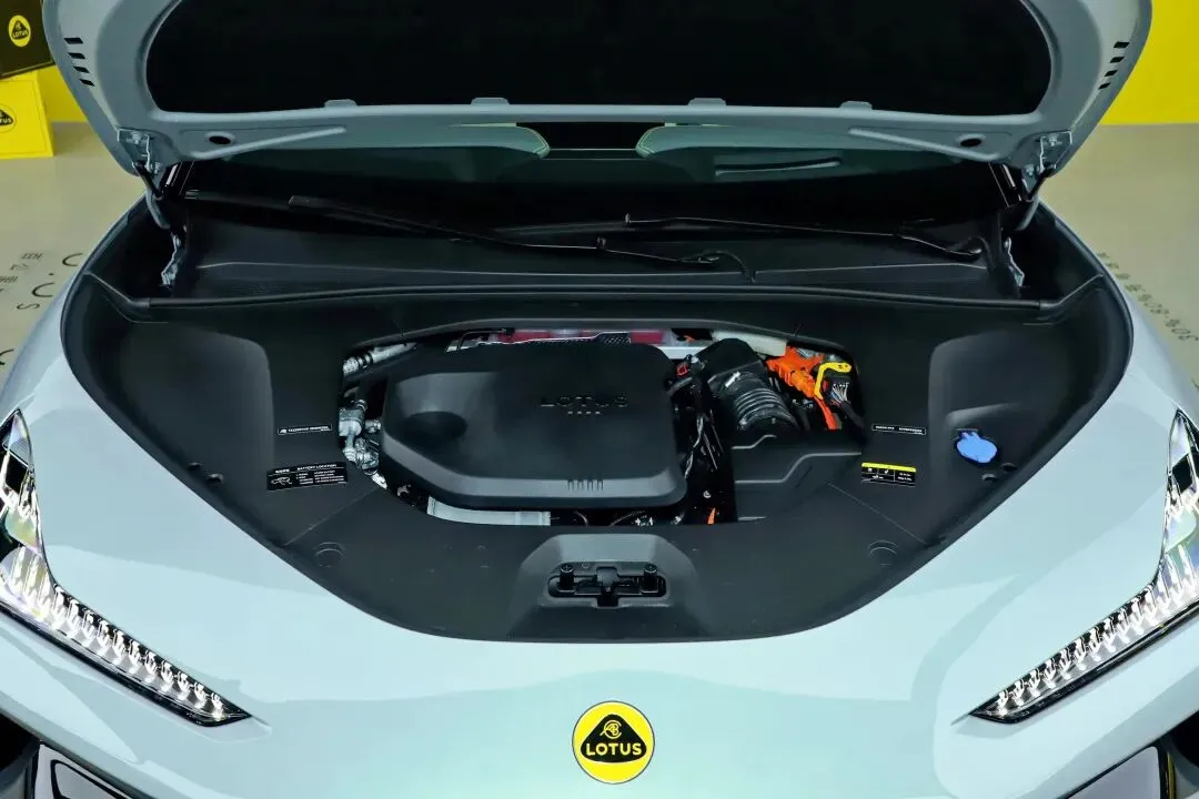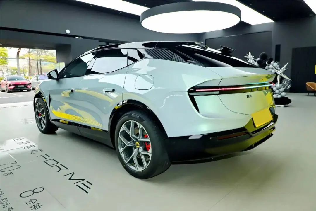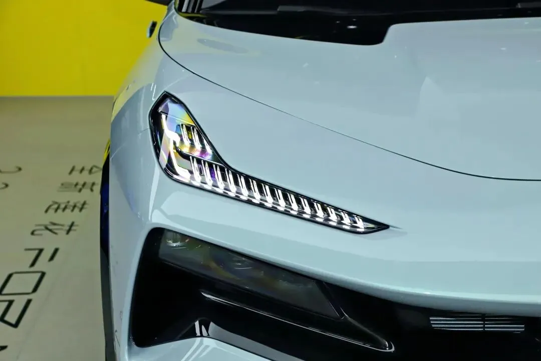 全新莲花For Me的外形设计,给人的整体感觉是流畅而动感的。它延续了莲花品牌近年来强调的“孔隙”式设计理念,车身各处遍布着功能性的开孔与通道,这不仅仅是为了视觉上的战斗气息,更是为了切实的空气动力学服务。从前脸看去,最引人注目的是主动式贯穿进气格栅。它可以根据散热需求自动开合,在需要大量散热时完全打开,而在高速巡航追求低风阻时又能部分闭合,兼顾了效能与效率。格栅两侧是标志性的L形分体式LED大灯组。上方锐利的日间行车灯带如同两道剑眉,赋予了车辆不错的神韵;下方的远近光大灯则巧妙地隐藏在格栅两侧的通风道结构中,与整体设计融为一体,不会显得突兀。前保险杠下方的运动化前唇和两侧真实的导流槽,进一步强化了其源自赛道基因的视觉特征。