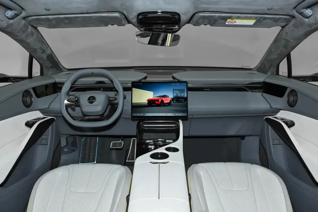 底盘和转向方面,它采用了前双叉臂、后多连杆式的独立悬挂。这种结构在理论上有利于兼顾一些操控稳定性和乘坐舒适性。实际行驶中,对路面细小颠簸的过滤,以及过弯时车身的侧向支撑,是这套悬挂调校需要平衡的地方。转向系统是电动助力,通常情况下会比较轻盈,方便在市区挪车和掉头。驱动方式是前置四驱,具体为电动四驱,这意味着前后桥的动力分配可以由电脑根据路况快速调整,对于一些湿滑路面或非铺装路面,能提供相对更好的行驶稳定性。轮胎的规格是前255/50 R20,后285/45 R20,后轮更宽的设计通常是为了提供更强的抓地力,配合超过2.5吨的车重,能让人对行驶的安稳感有一定预期。转向手感是这台车沟通的核心。它的回馈力度均匀,车头响应线性,没有许多电动车常见的电子黏滞感。在蜿蜒道路中,前双叉臂悬挂提供了清晰的几何约束,轮胎的抓地极限显得宽裕。电动四驱系统在弯中的动力分配颇为智能,出弯加速时能感到后桥更为活跃,帮助车尾柔和地向外舒展,增添了一份灵动。尽管车重可观,但低重心和坚韧的悬挂让侧倾被抑制在一个得体的范围内。它给人的感觉是稳健而可预判的,快跑时有一种从容的精准。