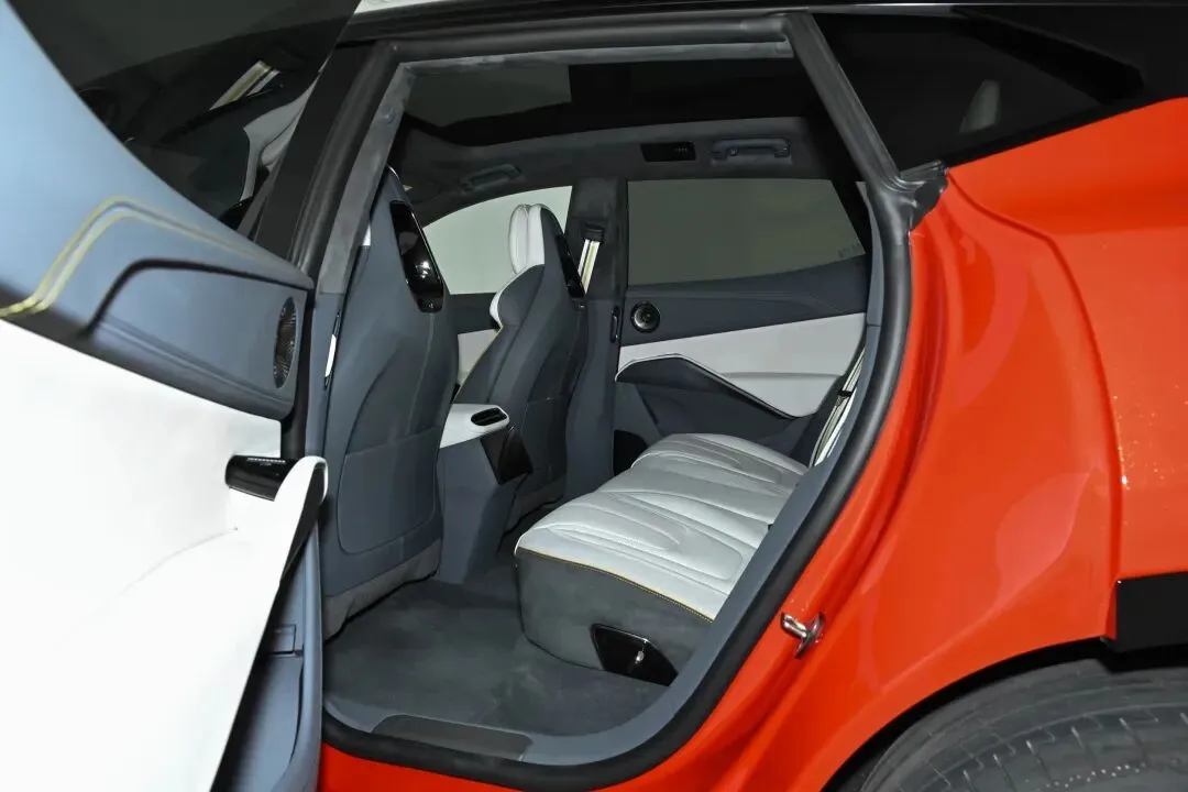 车辆尾部的层次感比较丰富。顶部是尺寸适中的固定式扰流板,中间是当下流行的贯穿式尾灯,灯罩进行了熏黑处理,点亮后的辨识度应该不错。尾灯两侧的造型并非简单的装饰,而是与车尾的导流孔洞相结合,形成了功能性的风道。后包围的设计富有立体感,大面积的黑色饰板与扩散器造型整合在一起。主动式电动后扰流板,它具备多级可调功能,能在不同车速和驾驶模式下自动调整角度,以提供相应的下压力或降低风阻。新车提供了多种车身颜色,其中新增的“绯花橙”和“云釉青”两种配色颇具特色。