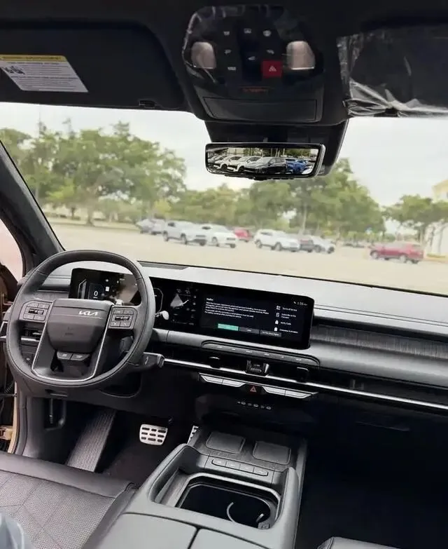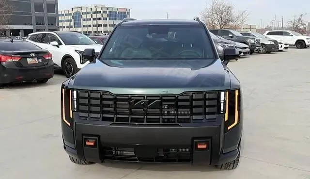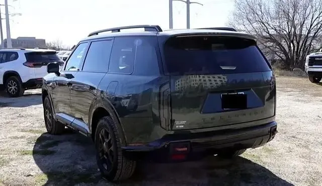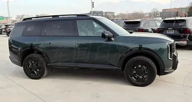咱们先瞅瞅这张脸。全新一代Telluride彻底抛弃了以往的圆润,换上了家族最新的“刀削斧凿”式设计语言。前脸那块矩阵式无边界大尺寸进气格栅,看着就让人心里踏实,仿佛写着“生人勿近”。两侧竖向分体大灯犀利得很,再配上那个自带拖车钩的粗壮前包围,这哪里是城市SUV,分明就是随时准备去征服无人区的硬汉。说实话,把它和丰田汉兰达停在一起,汉兰达瞬间显得有点“清秀”了,Telluride这种扑面而来的压迫感,确实更符合咱们对“大块头”的想象。