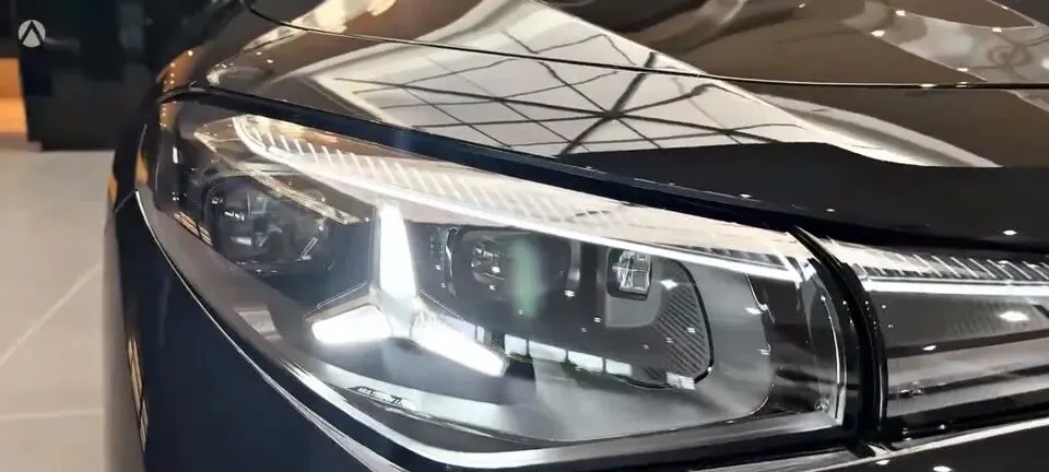 > “车辆前大灯细节展示,LED灯组设计精致,科技感十足。”