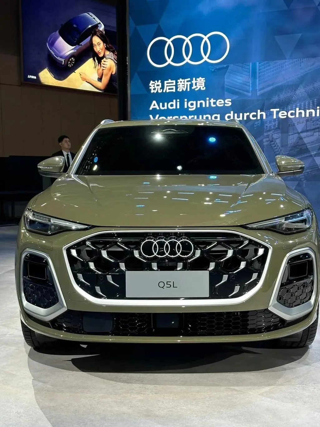 先从.外观说起吧,我.现在站.在Q5L旁边。这个车外观你们都熟,属于那.种第一眼不惊艳,但.越.看越顺眼的类型。前脸.那个.大嘴,矩阵灯一.亮,晚上辨识.度挺高的。我个人是比较喜欢它这个比例的,侧面拉长之后.显得很稳,就是.那种典型奥迪.味.儿。轮.毂样式.嘛,中规中.矩,不丑,但也谈不上.多帅。