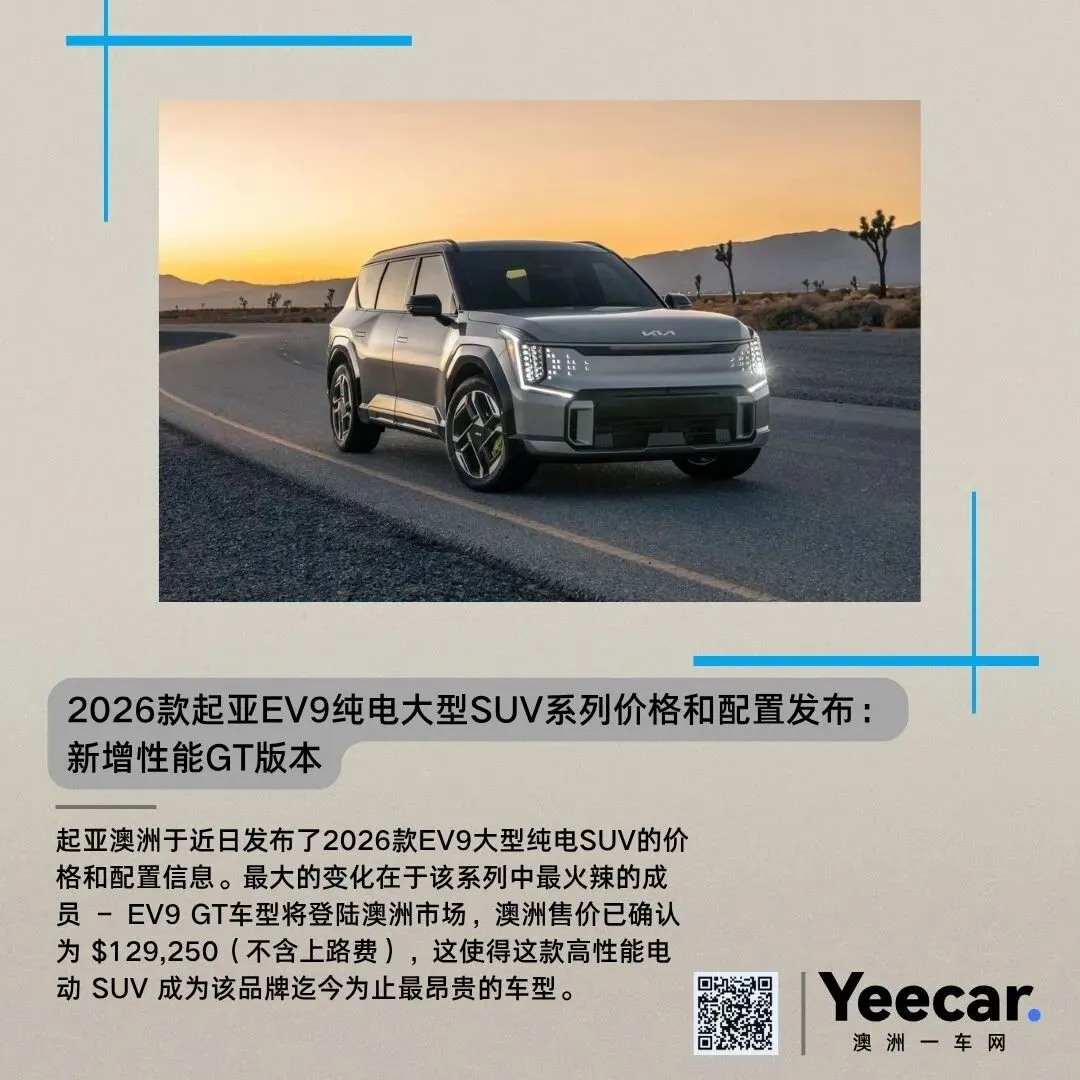 2026款起亚EV9系列澳洲定价如下(以下为估计直接开走价)