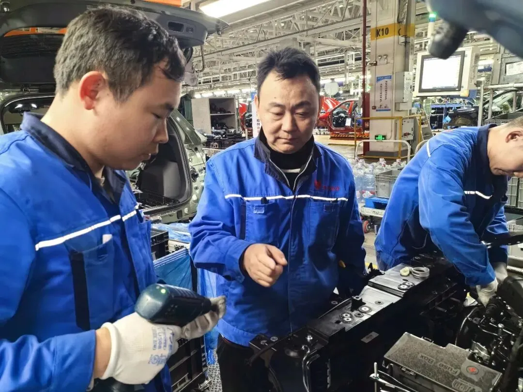 总装SUV区域聚焦生产全流程,强化质量管控精准发力,以扎实举措和实际的成效,将质量要求融入每一道工序、每一个操作环节,全力保障车型装配质量稳定提升,为车间高质量生产筑牢质量屏障。