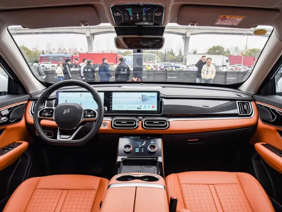 动力是奇瑞鲲鹏1.5TGDI加2DHT,配了一个199kW的电机,系统最大功率314kW。零百加速进了7秒俱乐部,7秒出头。一台家用SUV,红绿灯起步能秒不少车,这你受得了……好吧我不说了。