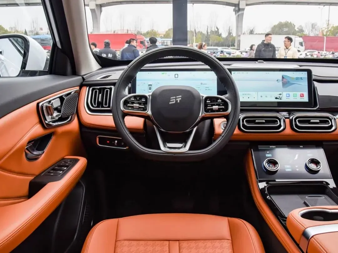 另一款是山海L7超越版,定位5+2座电混SUV。指导价11.49到12.79万,限时权益价9.99到11.29万。比燃油版贵了3万,但东西给得确实不一样。