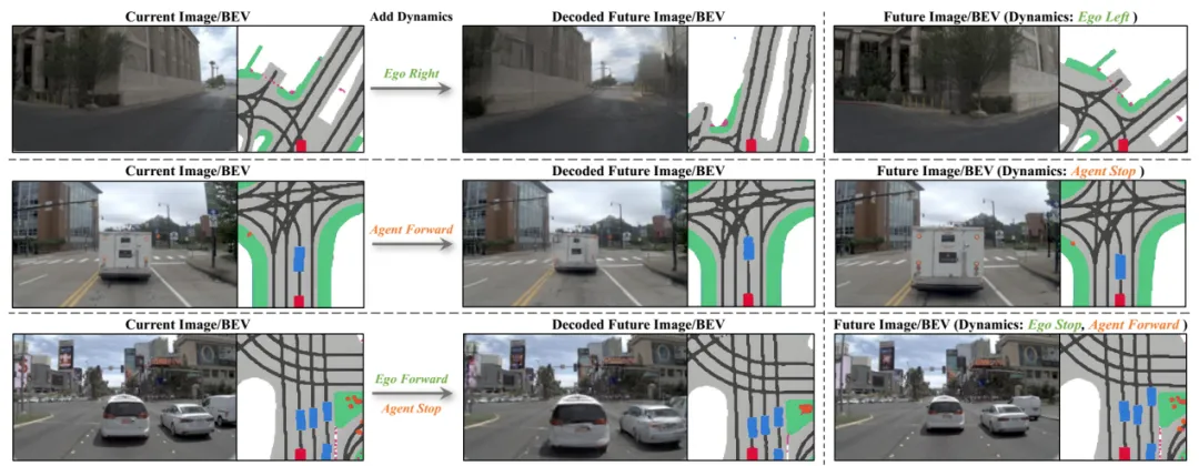 华为将未来动态压缩成少量离散token。考虑到driving scene场景中存在两类完全不同来源的变化:一类来自 ego 自身运动,例如加速、转向、制动;另一类来自环境中的其他 agent,例如前车减速、行人横穿、旁车cut-in。如果将这两类动态混合建模,会出现严重 ambiguity歧义,也就是没有对齐,例如ego 前进和前车后退在视觉上可能呈现类似 pattern。因此DynVLA显式构建了两个query :一个用于 ego-centric dynamics,一个用于 environment-centric dynamics。小米亦是如此,一个查询序列是负责理解静态的3D空间结构(如车道线、可行驶区域、静态障碍物),另一个是负责预测动态的时空演变(如周围车辆的未来轨迹、行人的意图)。小米多了3D结构。