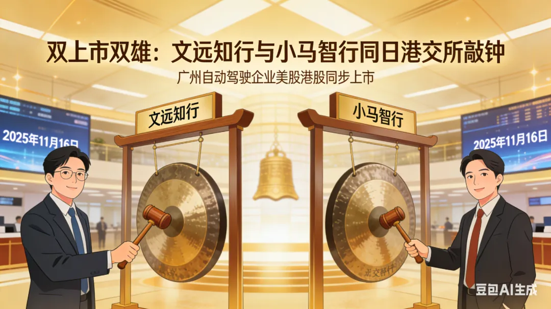 这还不是广州自动驾驶最出圈的时刻。真正让世界记住这座城市的,是两个月后的一天——2025年11月16日,文远知行与小马智行,两家广州自动驾驶企业,在同一天敲响了港交所的上市钟声。