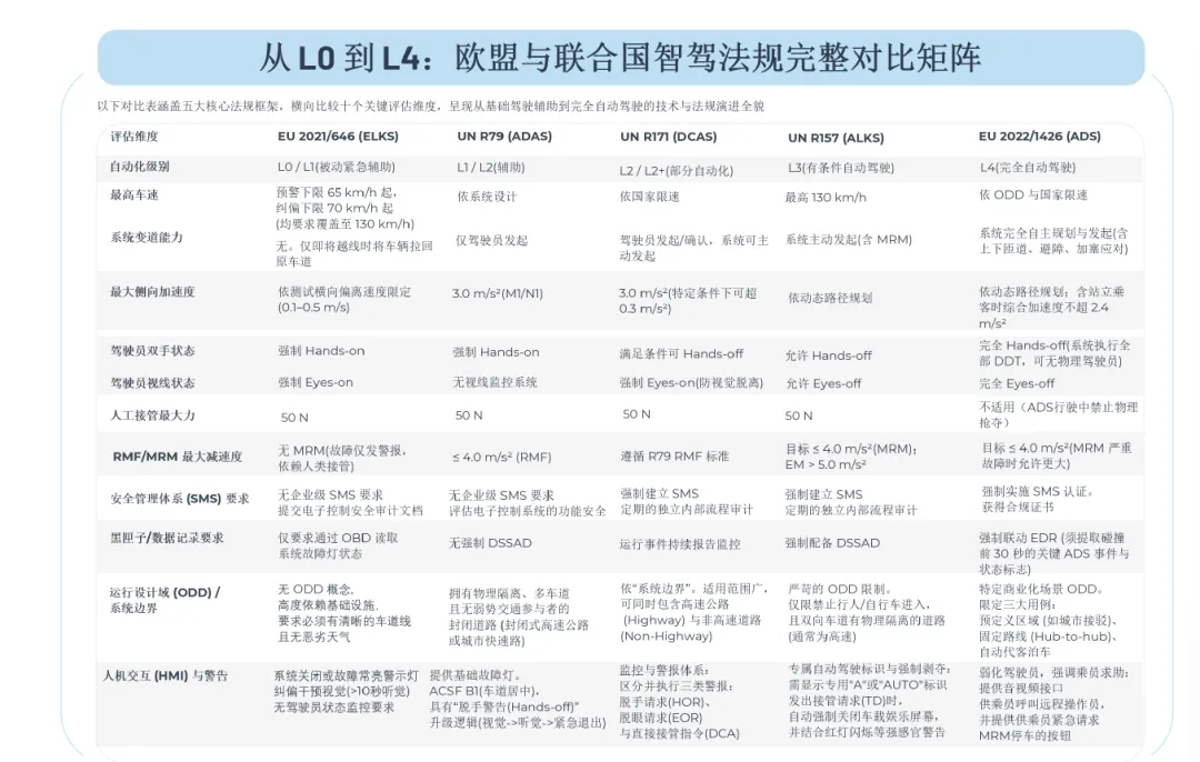 浅析欧盟自动驾驶法规L0至L4(EU 2021/646、UN R79、UN R171、UN R157、EU 2022/1426)