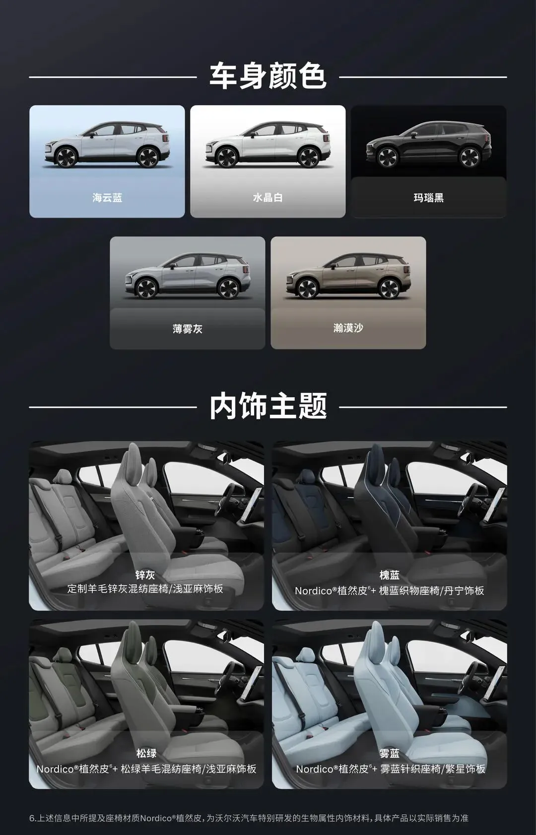 设计方面,沃尔沃EX30焕新款延续沃尔沃品牌一贯的简约质感与自然灵感,拥有大轮毂和等长的前后悬挂,轴长比完美接近0.618黄金比例,呈现出简约而不简单的时尚造型。内饰跨界运用时尚元素,选用天然和可再生材料,如丹宁、亚麻、羊毛混纺等,完美融合了北欧豪华与环保科技。此外,基于原生纯电平台打造的EX30拥有590公里(CLTC工况)续航实力,电池电量从10%充至80%最快仅需26分钟(直流快充),真正实现了远游零焦虑,是契合全球前沿趋势的绿色时尚之选。