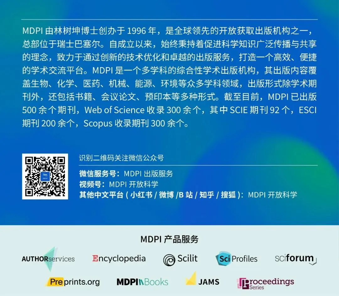 点击左上角“MDPI开放科学”关注我们,为您推送更多最新资讯。