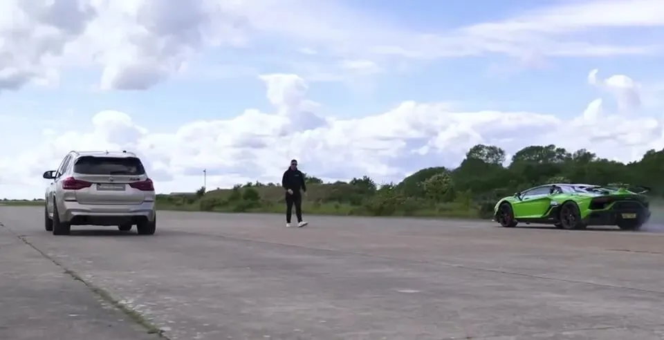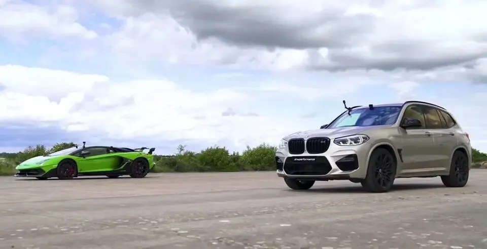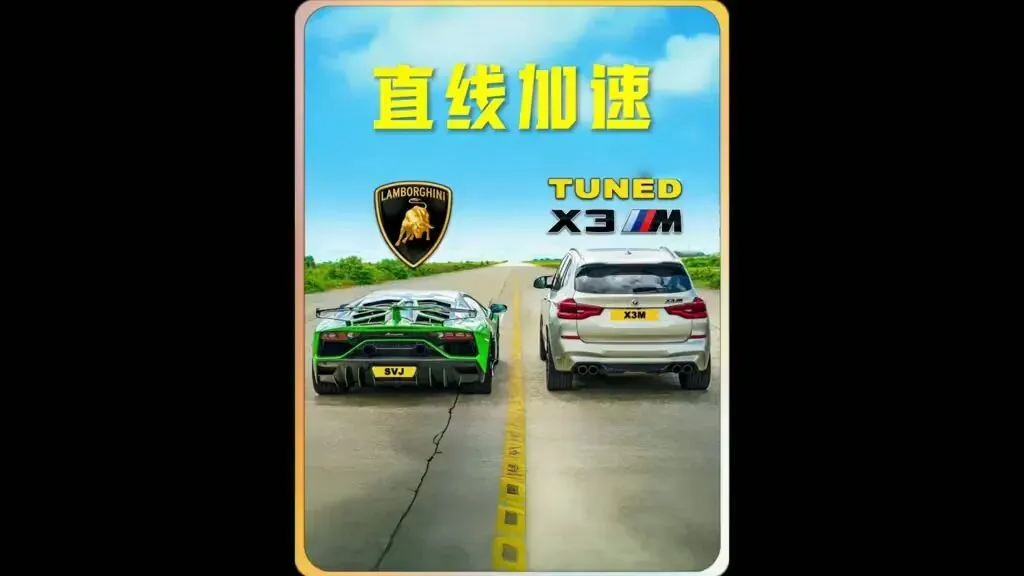 Power宝马X3M遇到超级跑车兰博基尼大牛SVJ,两台车崩直线,究竟谁更快?