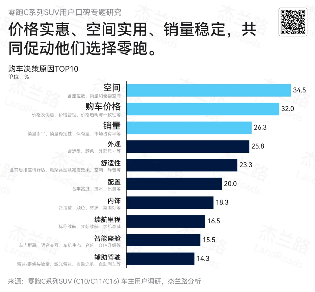 如前所述,零跑C系列的用户决策逻辑高度聚焦于性价比导向,即在价格可控的前提下,优先选择空间实用、市场验证充分的产品,从而形成“价格+空间+销量”三位一体的核心驱动结构。