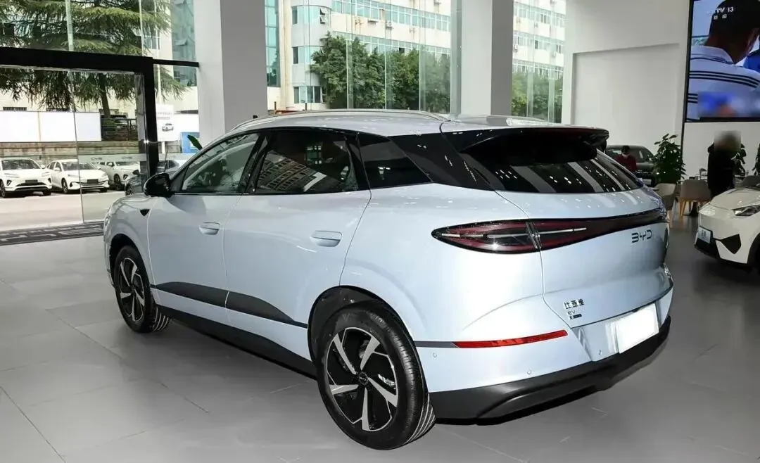 再来看车尾部分,车尾设计与车头遥相呼应,贯穿式星环尾灯是最大亮点。环形灯带采用曲线设计,灯带间距极小,对制造工艺要求严苛,夜晚点亮时宛如璀璨星河,辨识度拉满。隐藏式后雨刷让尾部造型更显整洁,车尾右下角的“EV”或“DM-i”标识,清晰区分不同动力版本。整体车尾造型简洁时尚,线条流畅,既符合家用SUV的稳重感,又融入了年轻消费者喜爱的潮流元素。