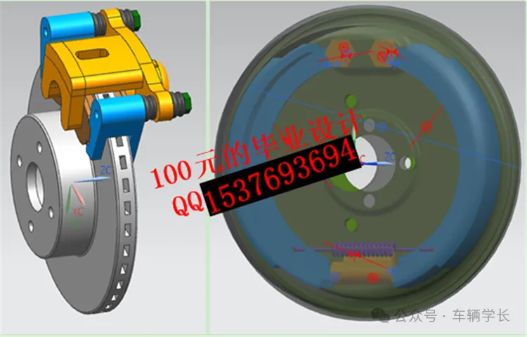 新捷达轿车采用前盘后鼓的制动布局,前制动器选用通风盘式结构,从 CAD 装配图可见,通风盘采用双端面摩擦面+径向通风道设计,通风道数量为 24 条,散热效率比实心盘提升 40%,符合 GB 7258-2017 机动车运行安全技术条件;后制动器采用领从蹄式鼓式结构,制动力矩比为 1.6:1,保证前后制动的平衡。设计时需重点匹配制动盘直径与总泵推力,前制动盘直径设定为 256mm,单盘制动力矩≥800N・m;参考开题报告的模态分析,制动盘的一阶固有频率需≥120Hz,避免制动时出现共振异响。