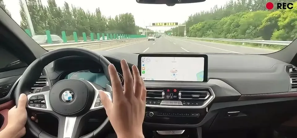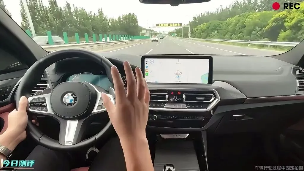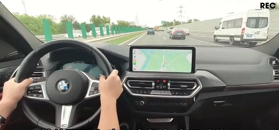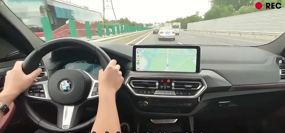 宝马X3高速行驶,方向盘和中控屏幕