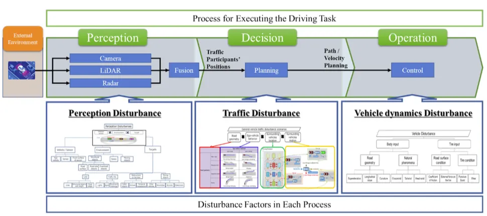 SAKURA把动态驾驶任务(DDT)分解为三个过程,然后针对每个过程,基于物理原理系统性地识别干扰因素: