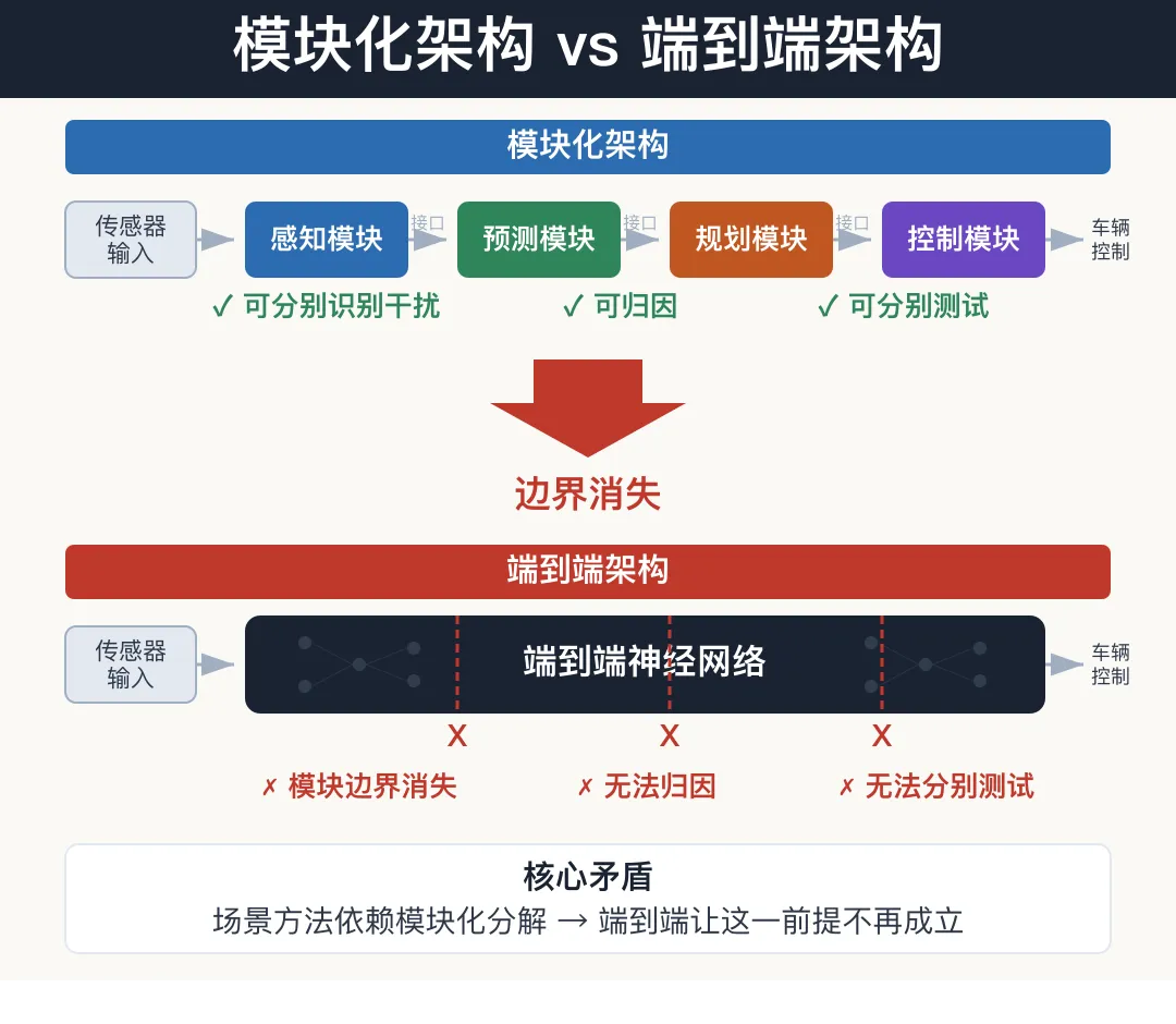 图4 模块化 vs 端到端架构对比2.1 模块边界消失:干扰无法归因