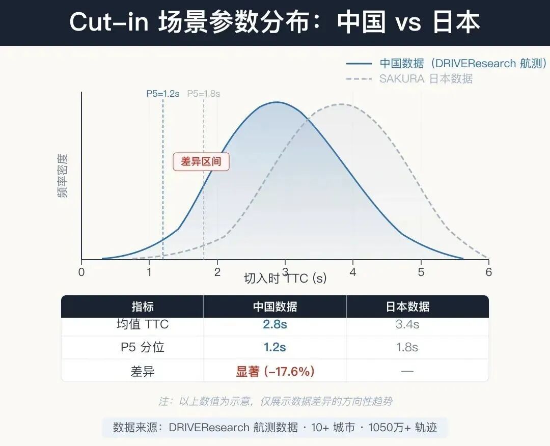 已有研究表明,中国驾驶员在Cut-in场景中的行为参数与欧洲和日本驾驶员存在显著差异。直接复用SAKURA基于日本数据标定的参数,对中国市场的产品既不准确,也不安全。