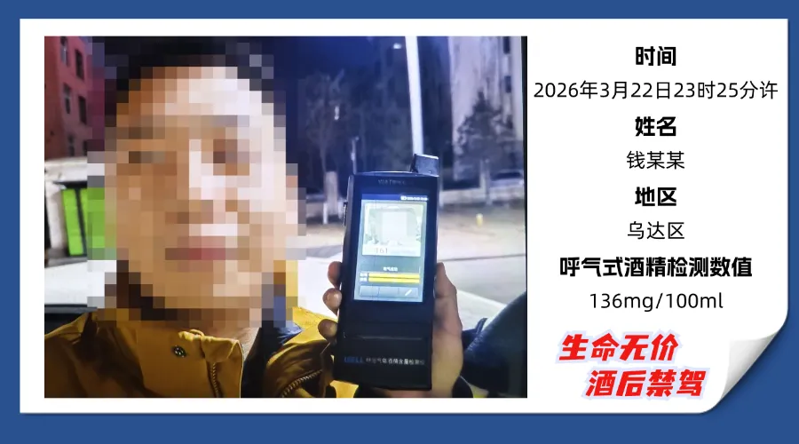 乌海市公安局各级交管部门严查酒醉驾不分昼夜!请广大驾驶人引以为戒,切勿心存侥幸,以身试法。遵规守法,安全出行!