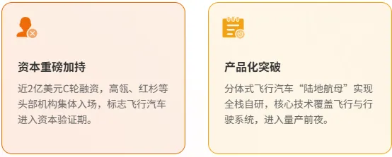 小鹏汇天是目前亚洲规模最大的飞行汽车公司,其分体式飞行汽车“陆地航母”已经进入产品化阶段。资本看中的不仅是它的技术(四大核心领域全栈自研),更是它背后的小鹏生态——整车制造能力、供应链资源、销售渠道,这些都不是初创公司能轻易复制的。