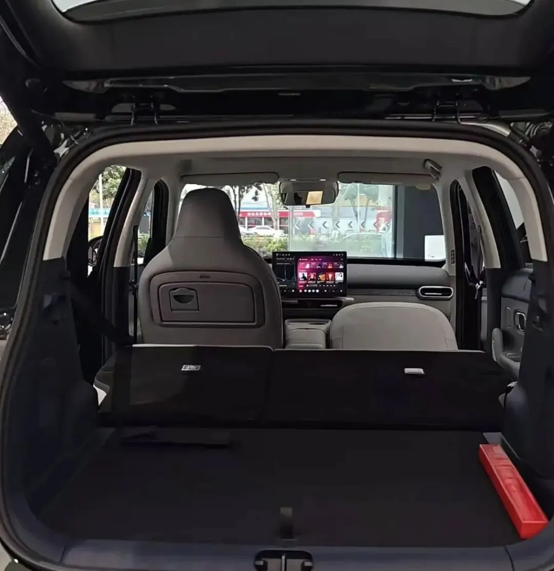 外观与实用性:悬浮车顶、18英寸轮毂、“哈哈尾灯”有辨识度,配色清新不呆板。副驾可以放倒成90°,后排也可以上翻到60°左右的位置,并且储物空间也很大,在主驾驶后面还有一个小桌板,家用的细节很到位。