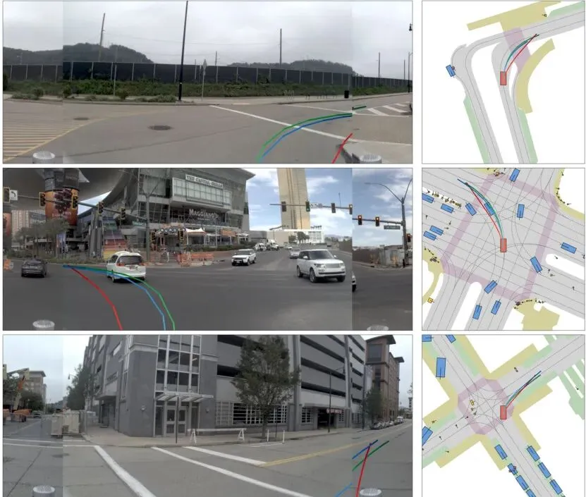 路径打分:看看当前场景下,哪些“转弯方式”是合理的。比如,在一条直道上,那些需要急转弯的路径得分就会很低;而在十字路口,直行和左右转的路径可能都有较高的得分。