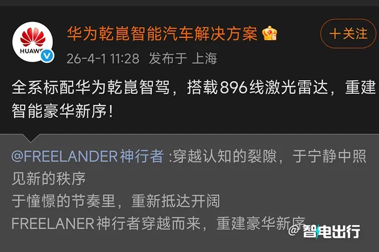 神行者不仅有强健的身体,脑子也得好使。智驾直接采用华为最新发布的896线激光雷达,座舱芯片则用了高通骁龙最新的8397芯片。