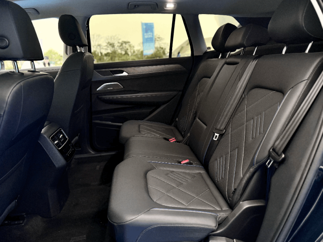 这个“两米宽体”带来的不仅是视觉上的敦实感,更是实实在在的空间收益:后排腿部空间超三拳,后排装两个儿童安全座椅,孩子之间不打架;693L的后备厢实测能塞下两个28寸行李箱、一个充气艇、三把折叠椅,还有空余。