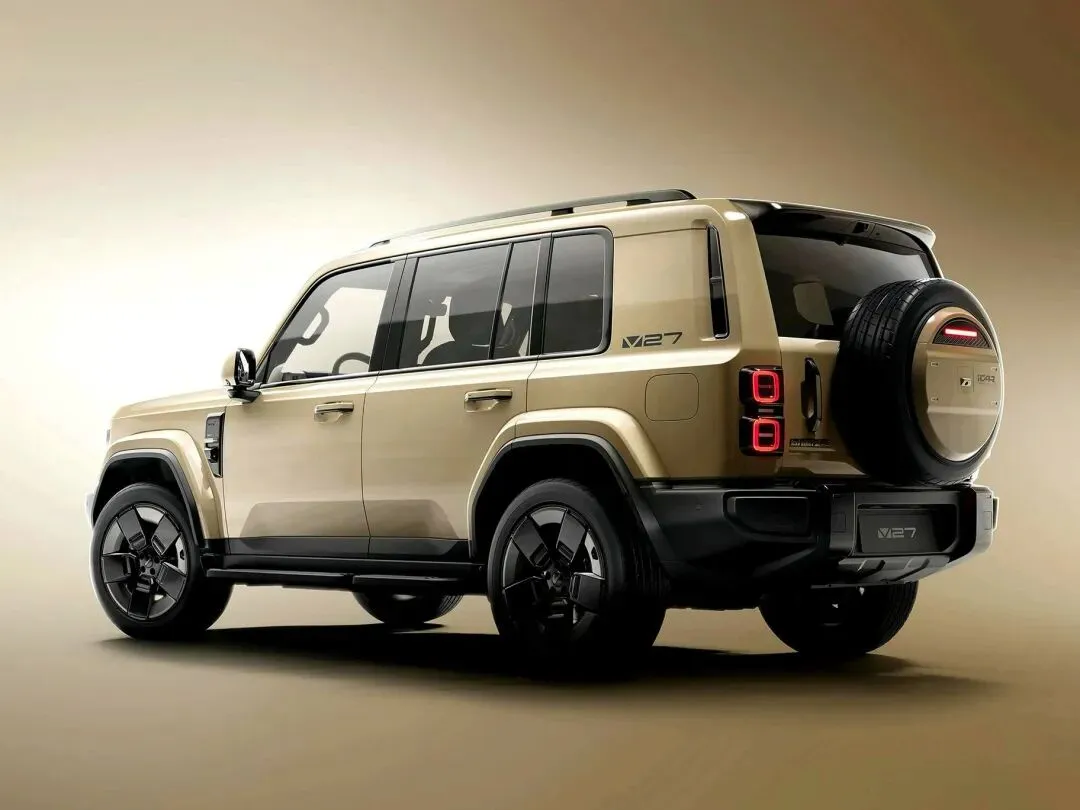 先.说.外观吧,我现在就站.在车旁边。你们看这个造型,就是典.型的方.盒子,直来直去,没有太多花里胡哨的线.条。前脸这个灯组,我凑近.看一.下,嗯,细节还行,不是.那种廉价塑.料感。侧面比例我个人是比较.喜欢的,车长5米多,但没有那种臃肿感,反而有点“收.着劲.儿”。外挂备胎一上,整个气.质就出来了,说.白.了,买这个车的人,多少是想要点样子的。