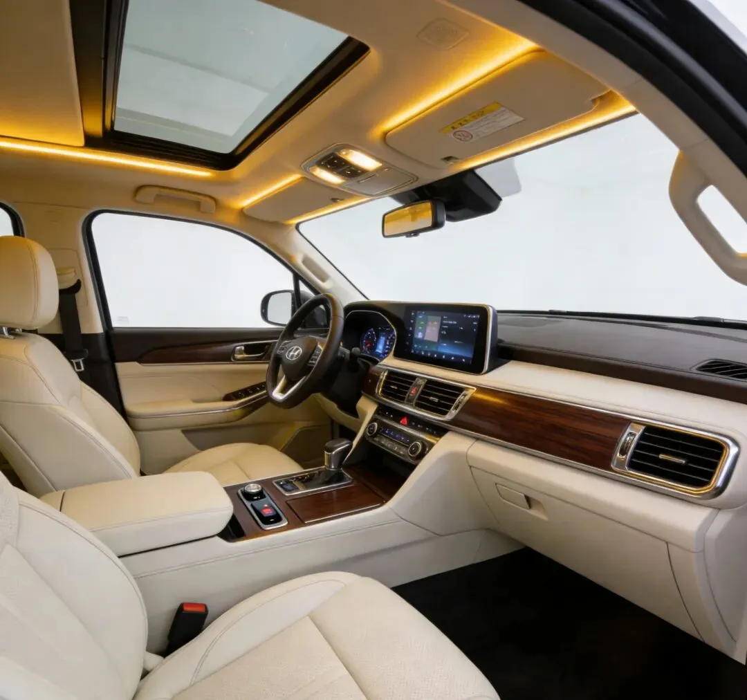 内饰强调“移动山屋”理念,材质以真皮+木纹+金属为主,风格沉稳实用。中控屏尺寸12.3英寸,布局简洁,物理按键保留较多,操作更直观。座椅宽大厚实,包裹性强,第二排可选独立航空座椅,第三排空间表现优秀。