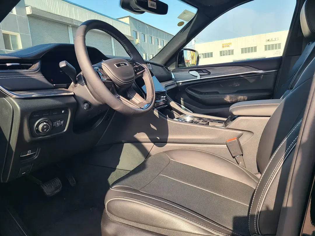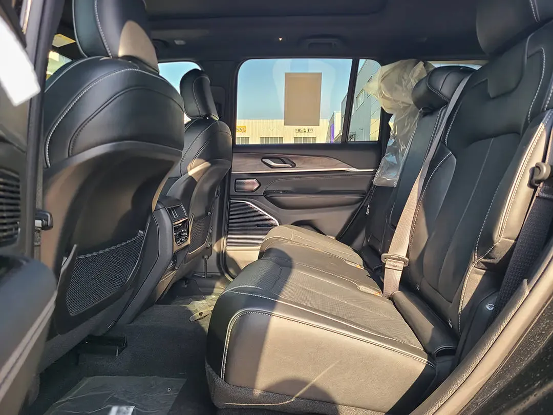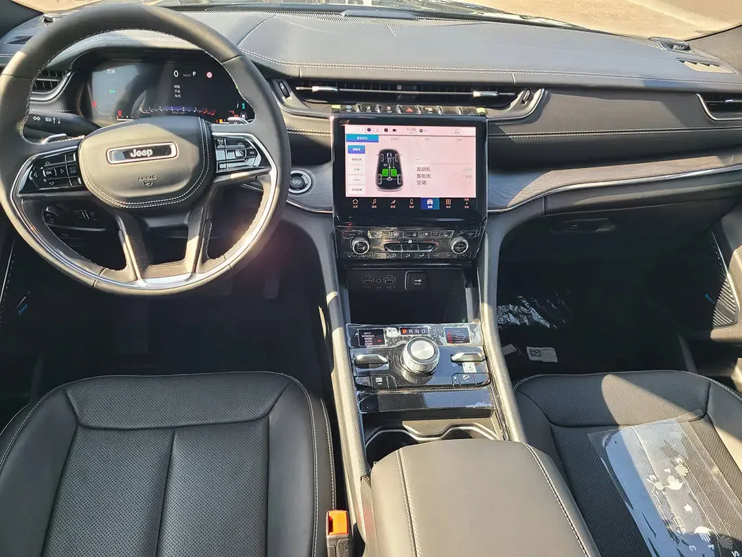 大切诺基4xe远峰版内饰主打墨翠黑美式豪华风格,标配Nappa打孔头层真皮座椅,前排加热+通风、后排加热;中控台采用大面积软质皮质包覆,铂金质感旋钮细节满满。整体做工扎实,接缝均匀,兼顾舒适、质感与实用性