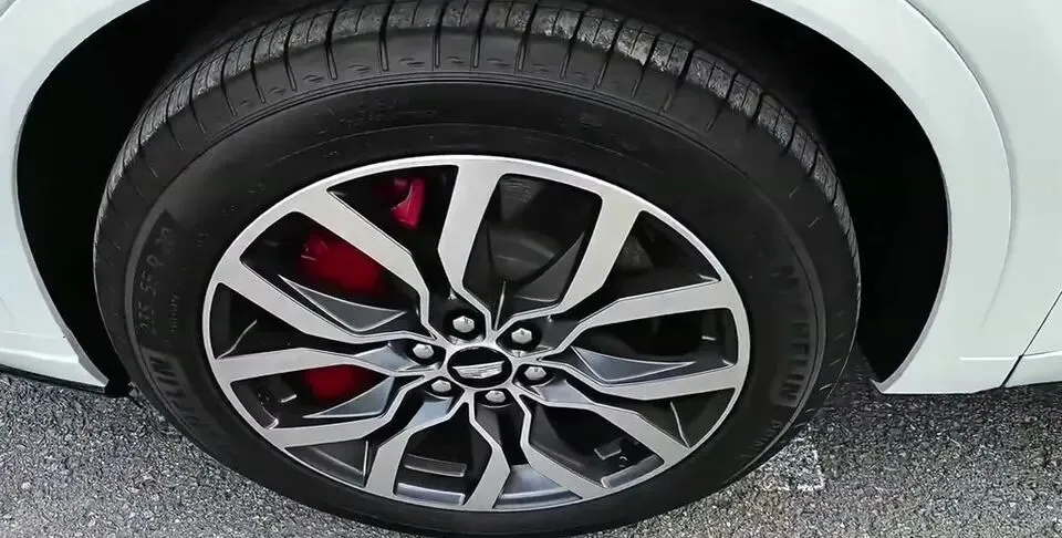轮毂造型也比较运动,红色卡钳看起来挺唬人。