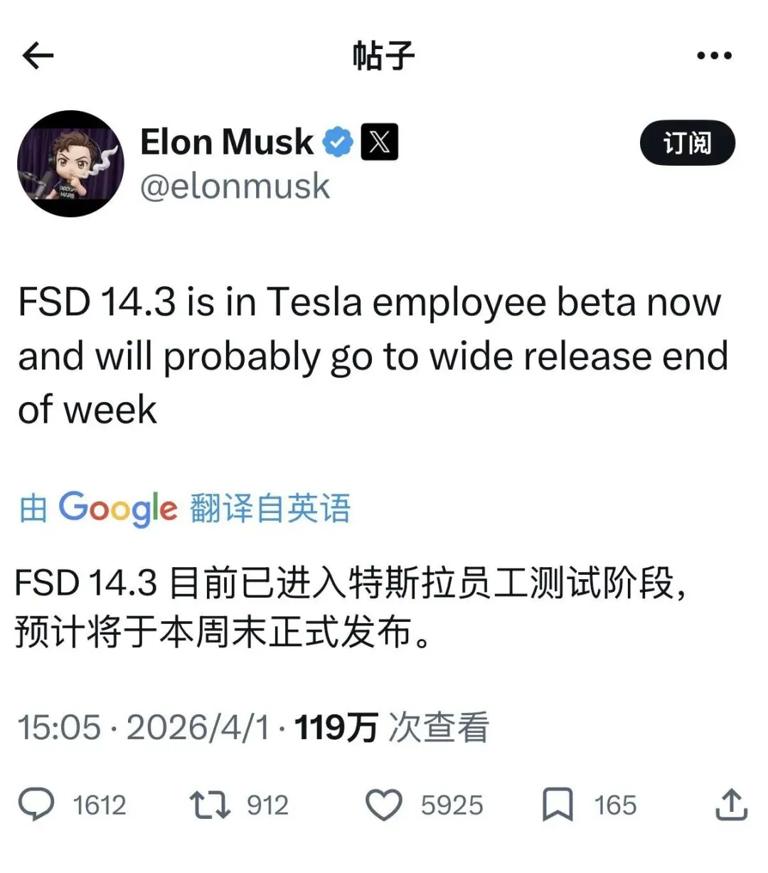一、FSD V14.3被马斯克定位为里程碑式版本