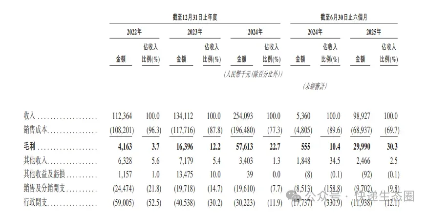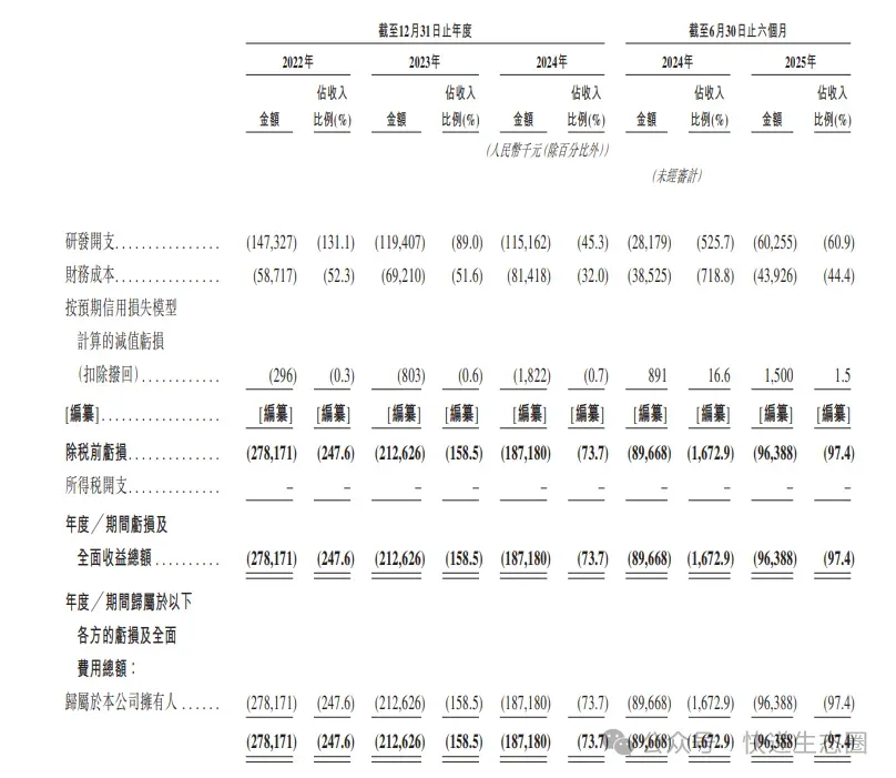 关键财务指标显示,主线科技2022年、2023年、2024年营收分别为1.12亿、1.34亿、2.54亿;毛利分别为416万、1640万、5761万;毛利率分别为3.7%、12.2%、22.7%;期内亏损分别为2.78亿、2.13亿、1.87亿。