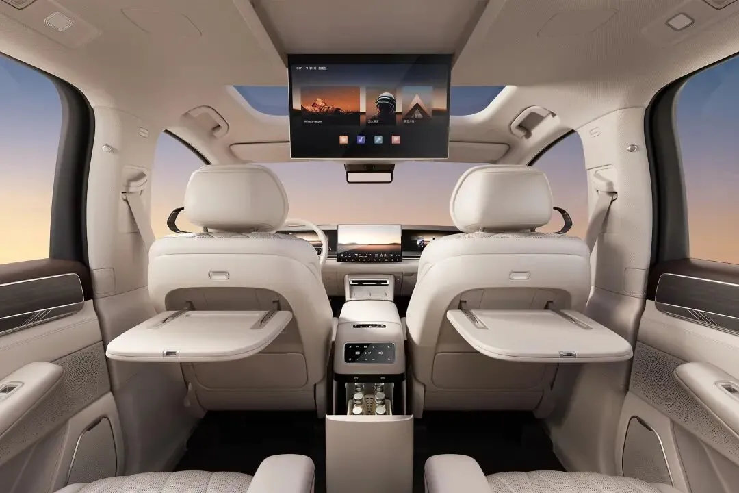 空间布局上,新车提供标配2+2+3七座布局,同时可选2+2+2六座版本,满足不同家庭与商务需求。第二排配备独立零重力航空座椅,支持电动多向调节、通风、加热、按摩等功能,腿托可一键躺平,搭配专属折叠小桌板、无线充电面板与扶手控制屏,打造出堪比头等舱的乘坐体验;第三排空间告别传统7座SUV的“应急短板”,支持电动调节与座椅加热,腿部空间可达一拳以上,头部空间充裕,成年人长途乘坐也毫无局促感,真正实现全座皆舒适。