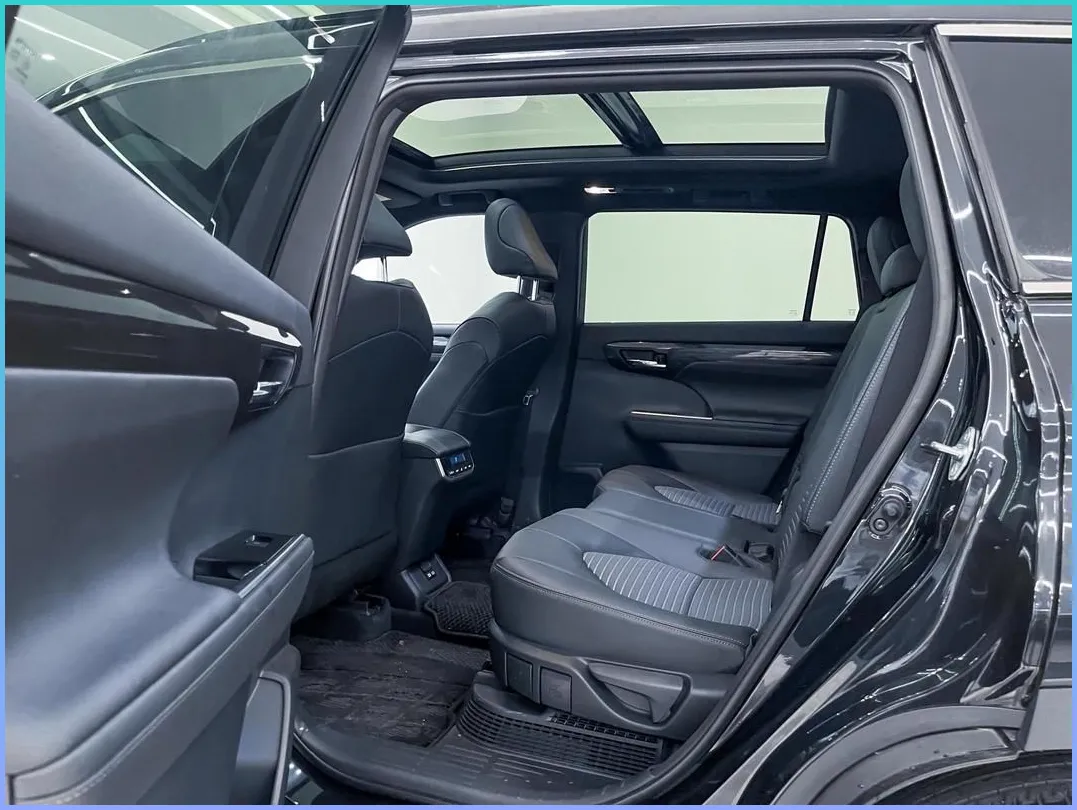 车身尺寸.5015/1930/1750mm,轴距2850mm。 这数据什么概.念?比汉兰.达还大一圈。黑色大嘴格栅配丰田标,那个被黑化处理的A柱,车顶悬浮感.十足。设计不是最新潮,但看着就是舒服.。