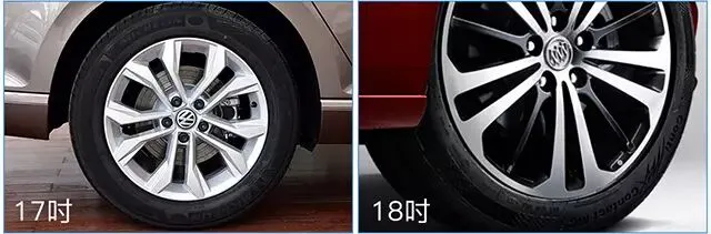 在对比两个车的时候,老周也注意到一个很有意思的现象。都是27万多的车了,迈腾竟然使用的还是215宽度的轮胎!轮胎宽度不足,从车尾看上去会显得不协调,而且迈腾的轮毂尺寸也只有17吋。那边便宜三万多的新君威则比较实在,使用了18吋轮毂。