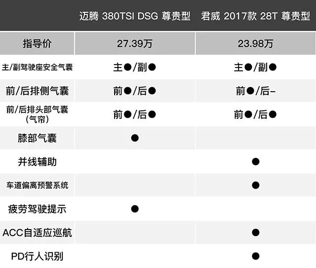 迈腾气囊更多,君威安全科技更高